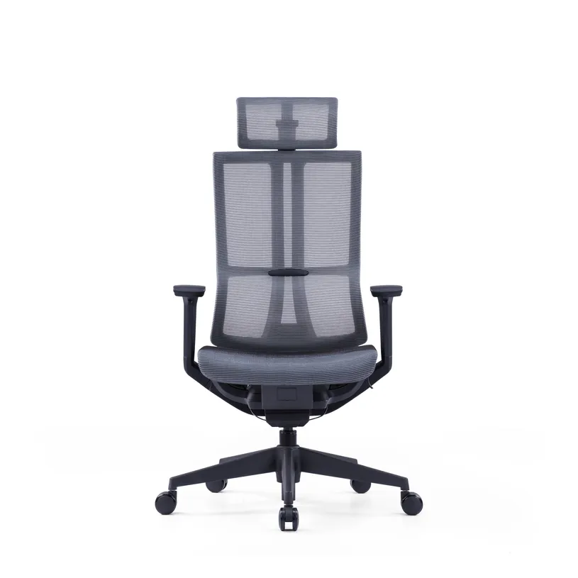 Fauteuil de bureau JAMES – accoudoirs réglables – appuie-tête réglable – noir et gris